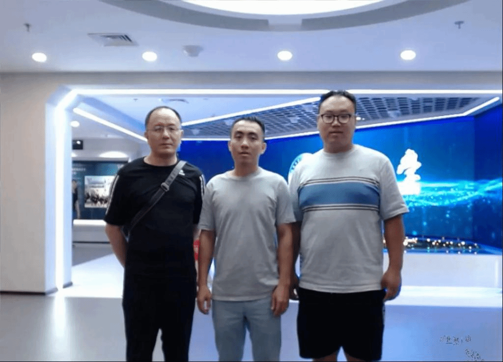 座谈会后,员工陈华诚在张亮和于敏之两位老师的陪同下参观了校史馆,并在校史馆合影留念。