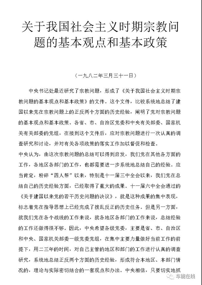 1982年3月31日 中共中央印发《关于我国社会主义时期宗教问题的基本观点和基本政策》