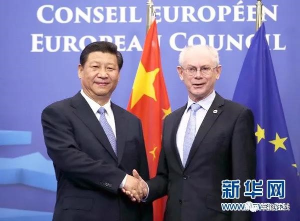 2014年3月31日,国家主席习近平在布鲁塞尔同欧洲理事会主席范龙佩举行会谈。双方就新形势下深化中欧全面战略伙伴关系广泛深入交换意见,达成重要共识。习近平强调,要从战略高度看待中欧关系,将中欧两大力量、两大市场、两大文明结合起来,共同打造中欧和平、增长、改革、文明四大伙伴关系,为中欧合作注入新动力,为世界发展繁荣作出更大贡献。