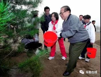 2002年4月6日,春雨润京华,万木绽新绿。上午,党和国家领导人江泽民、朱镕基、李瑞环、胡锦涛、尉健行、李岚清等来到北京朝来森林公园,参加首都全民义务植树活动。他们挥锨铲土,提水浇灌,栽下一株株树苗,为北京实施“绿色奥运行动计划”再播新绿。江泽民强调:“植树造林,绿化祖国,造福后代,我们要再接再厉,一代一代干下去。”